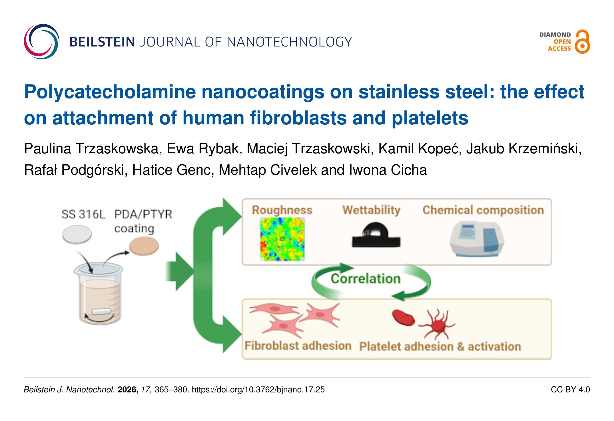 Trzaskowska, P.; Rybak, E.; Trzaskowski, M.; Kopeć, K.; Krzemiński, J.; Podgórski, R.; Genc, H.; Civelek, M.; Cicha, I. Beilstein J. Nanotechnol. 2026, 17, 365–380. doi:10.3762/bjnano.17.25