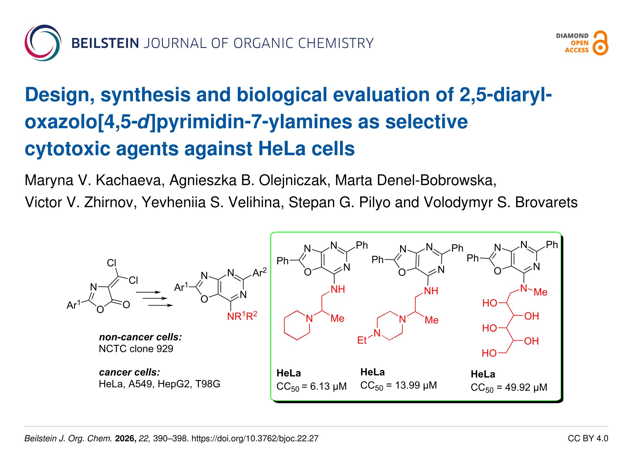 Kachaeva, M. V.; Olejniczak, A. B.; Denel-Bobrowska, M.; Zhirnov, V. V.; Velihina, Y. S.; Pilyo, S. G.; Brovarets, V. S. Beilstein J. Org. Chem. 2026, 22, 390–398. doi:10.3762/bjoc.22.27