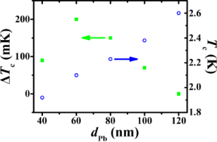 Figure 3 shows the dependence of ΔTc and of Tc on the thickness of the Pb layer dPb for the whole set of samples with insulating interlayers. ΔTc increases and Tc decreases approximately linearly with decreasing dPb. The maximum magnitude of the SSV effect, ΔTc = 0.2 K, is reached at the minimum thickness of the superconducting layer dPb = 60 nm.