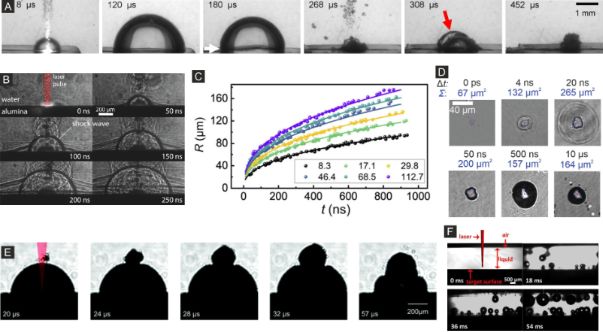 For laser-based materials processing in liquids, including techniques of LAL, LFL, and LML, a key challenge lies in managing the intricate interplay between laser energy deposition, plasma generation, and the dynamic behavior of the surrounding liquid environment. The liquid medium not only mediates energy transfer but also plays a crucial role in influencing NP generation mechanisms, shock wave propagation, and bubble dynamics. Understanding the liquid dynamics is therefore essential for optimizing process parameters, improving reproducibility, and tailoring material properties for specific applications. Ultrafast optical techniques such as transient absorption spectroscopy (TAS) [84-87] have been applied to investigate the influence of the liquid environment on the energy relaxation processes of laser-excited NPs. While the TAS technique provides insight into the electronic properties of the NPs, it is, however, unable to reveal the response of the surrounding liquid to the excitation. To this end, the time-resolved scattering techniques based on X-rays and electrons are more appropriate because of their capability of visualizing atomic-scale structure evolution.