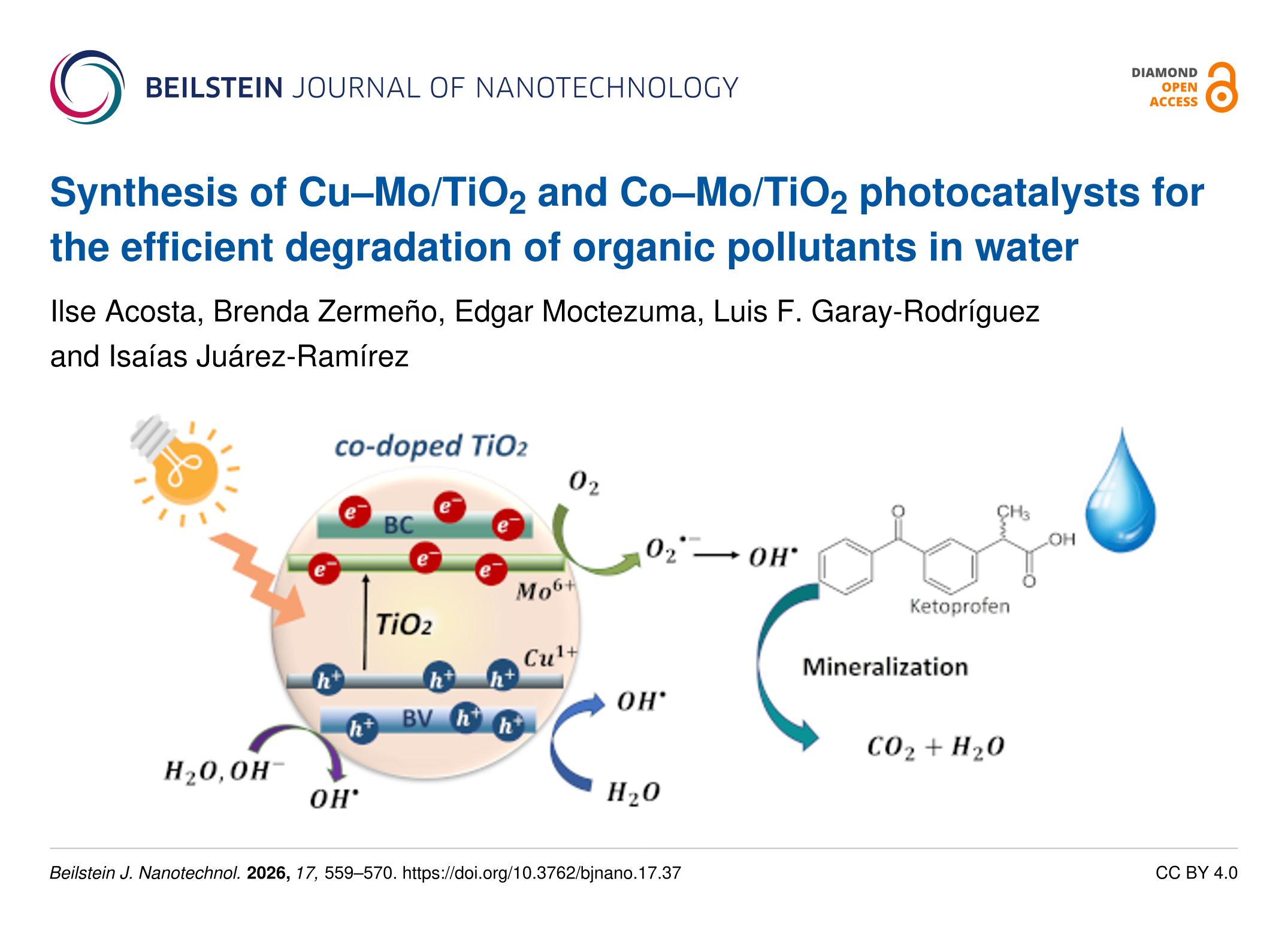 Acosta, I.; Zermeño, B.; Moctezuma, E.; Garay-Rodríguez, L. F.; Juárez-Ramírez, I. Beilstein J. Nanotechnol. 2026, 17, 559–570. doi:10.3762/bjnano.17.37