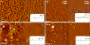 A similar trend can be observed for samples adsorbed on supports pretreated with mica-TG or mica-NAC (Figure 8 and Figure 9). Thiol groups are present on both surfaces. Thiols are more nucleophilic than hydroxyls and thus their ability for the formation of hydrogen bonds is different. P1 produces well-ordered layers on mica-TG and multilayered globular formations on mica-NAC. P2 and P4 are well-dispersed on surfaces obtained with those supports. The morphology of surfaces covered with P3 suggests good interaction between GSH units in the polymer and thiol groups on mica.