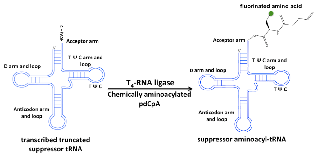Keywords: chemical aminoacylation; DfeGly; fluorinated amino acids; site-specific protein mutagenesis; TfeGly; TfmAla